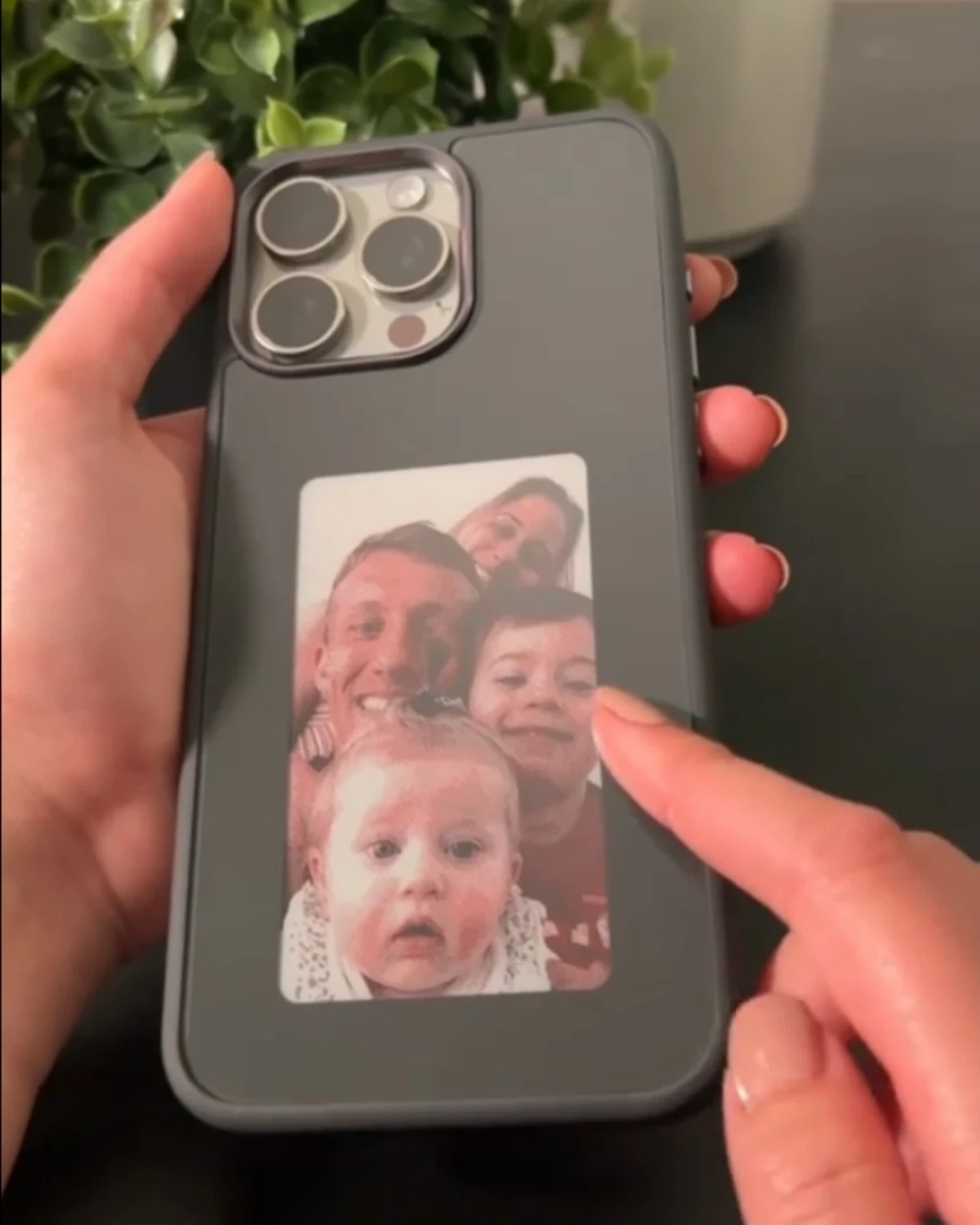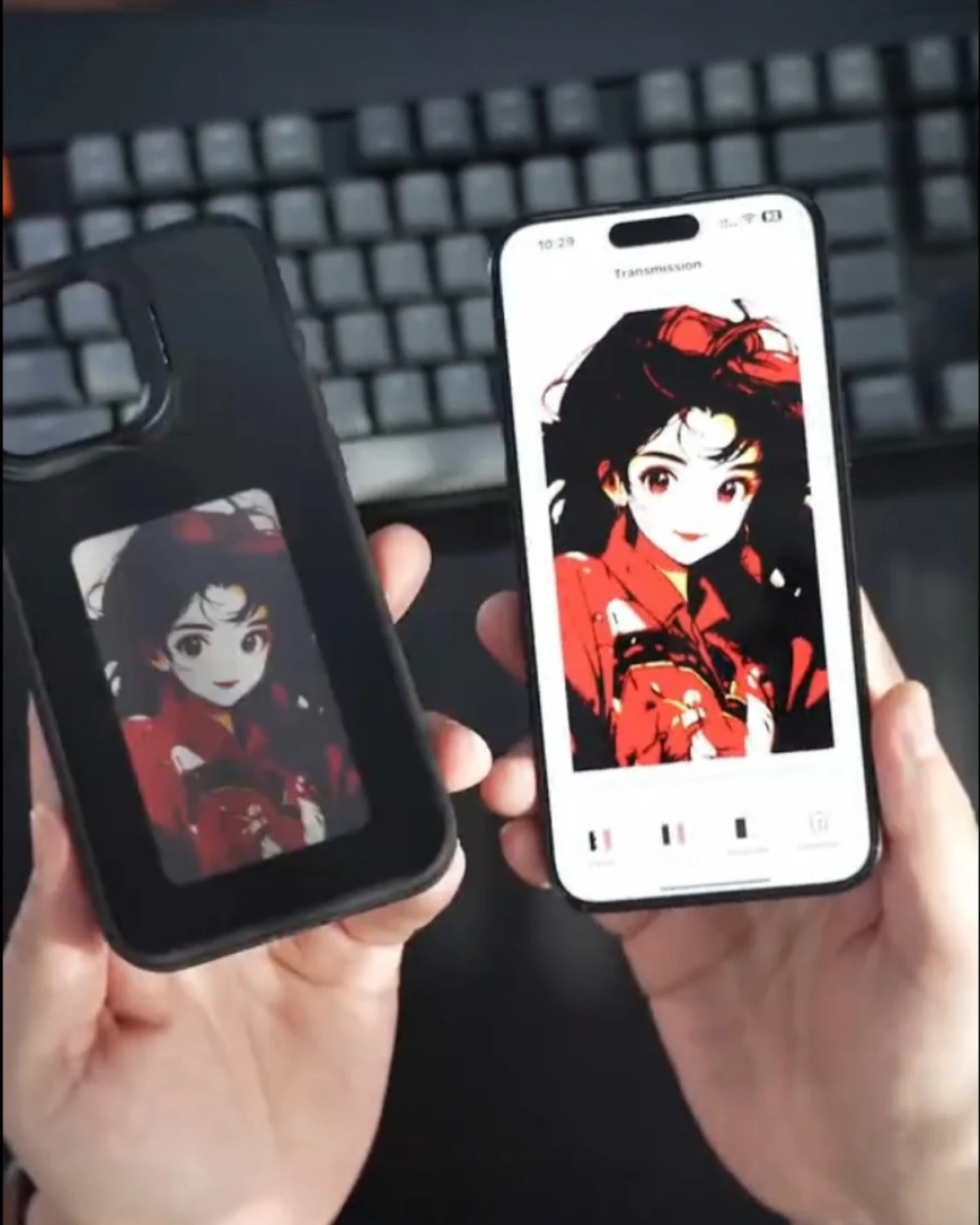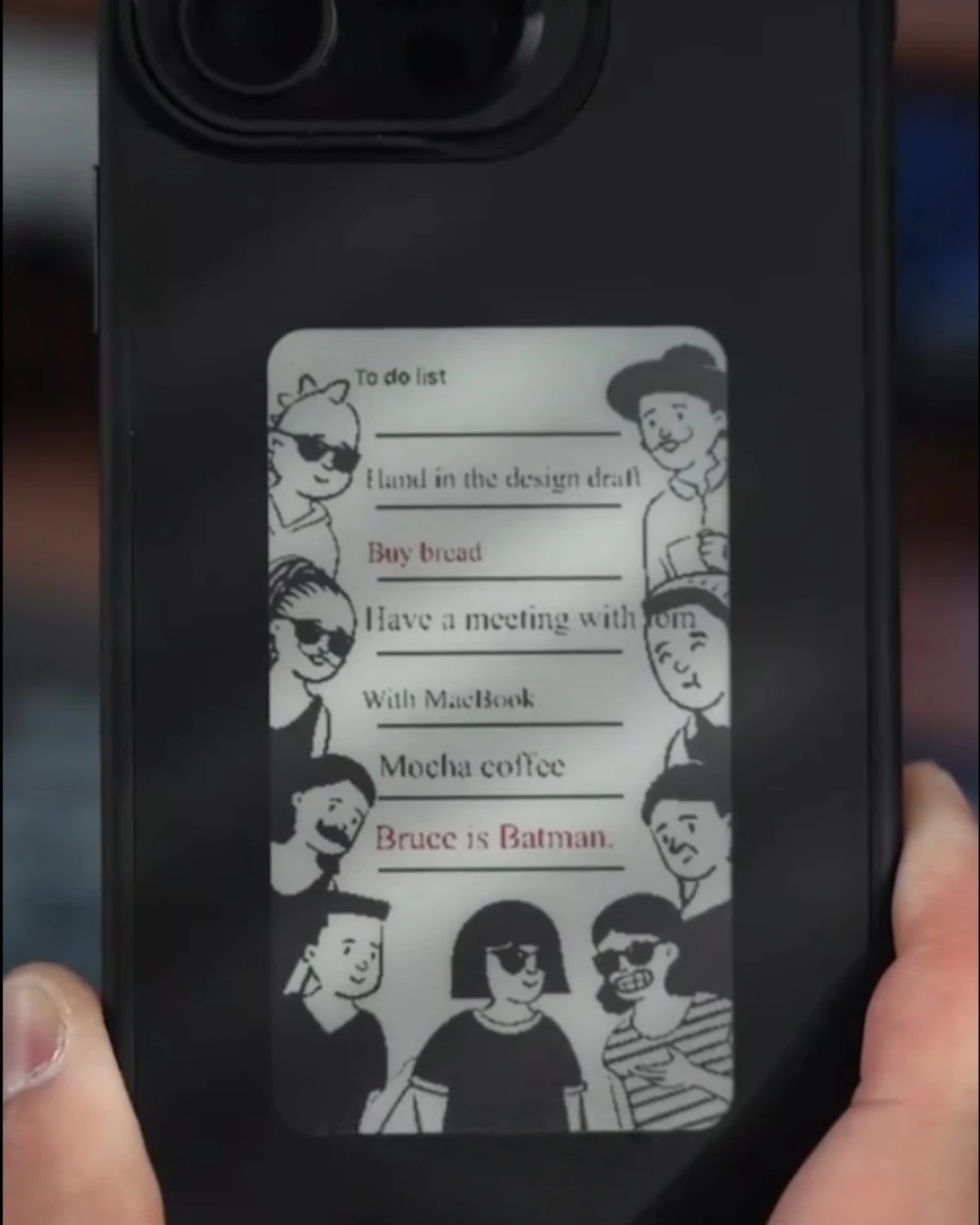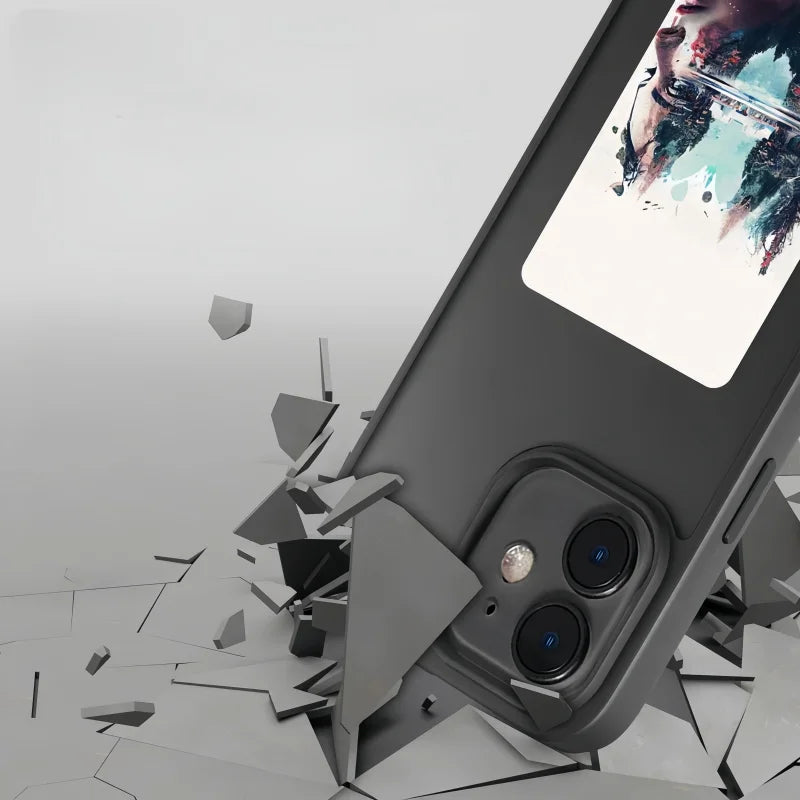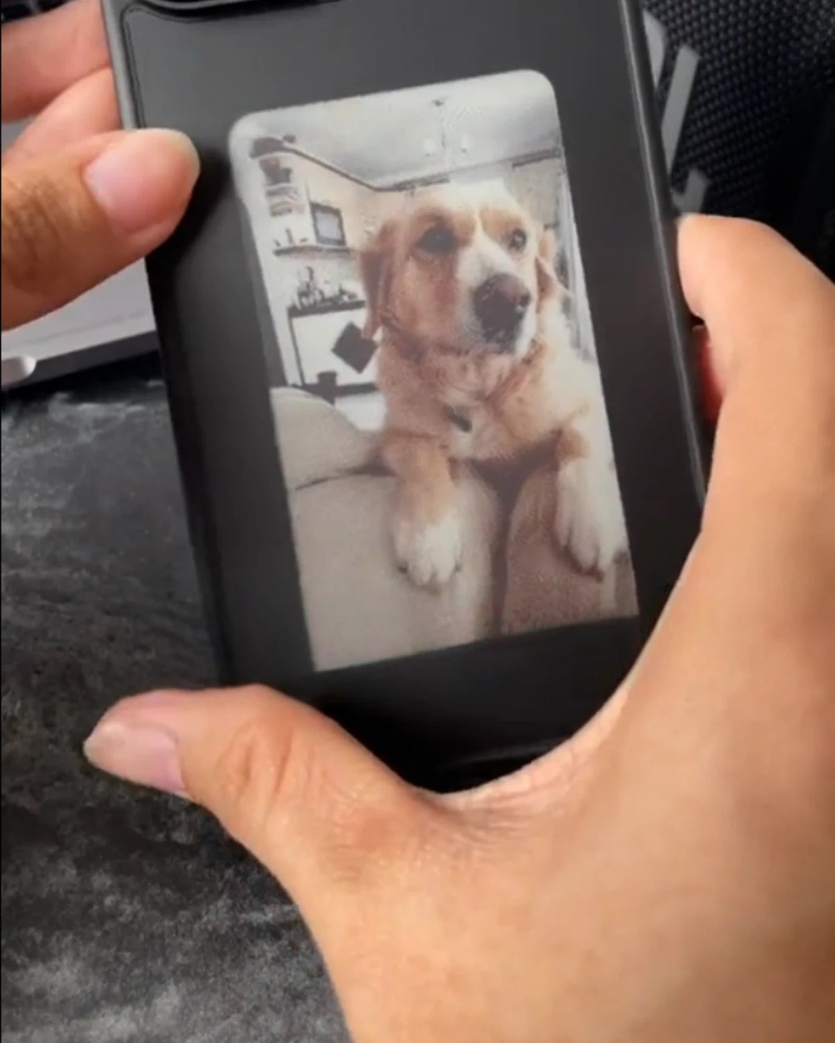 Upload your design in the app, then tap your phone to the case’s NFC area to refresh. The image stays on the e-ink screen until you change it again.